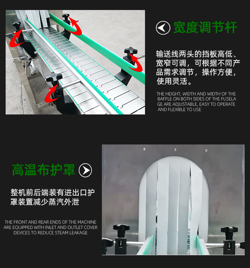 蒸汽收縮機是新一代收縮膜機,設計精巧, 外型美觀,不占空間,移動,安裝迅速快捷,超大范圍的調節,使其可適用于各種輸送帶和滑道。