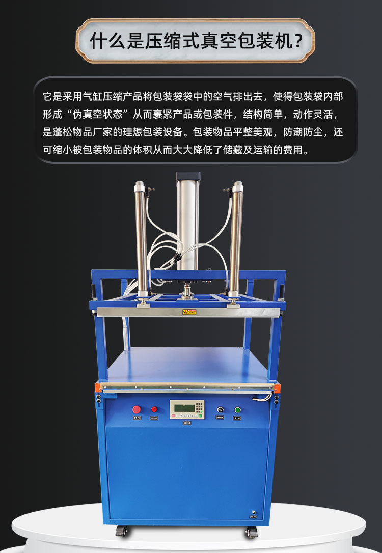 該機器適用于枕頭、棉被、毯子等壓縮包裝,并可防潮、防塵、防蟲。使用該機器,輕松封口,讓您的商品更安全、方便、整潔。